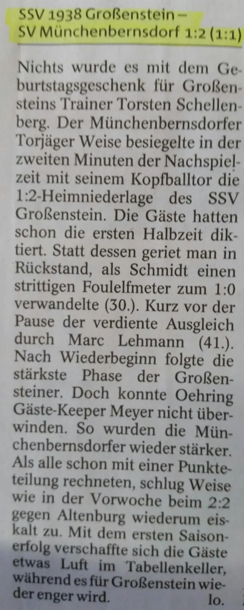 | SSV 1938 Großenstein | SV 1924 M`bernsdorf | |||