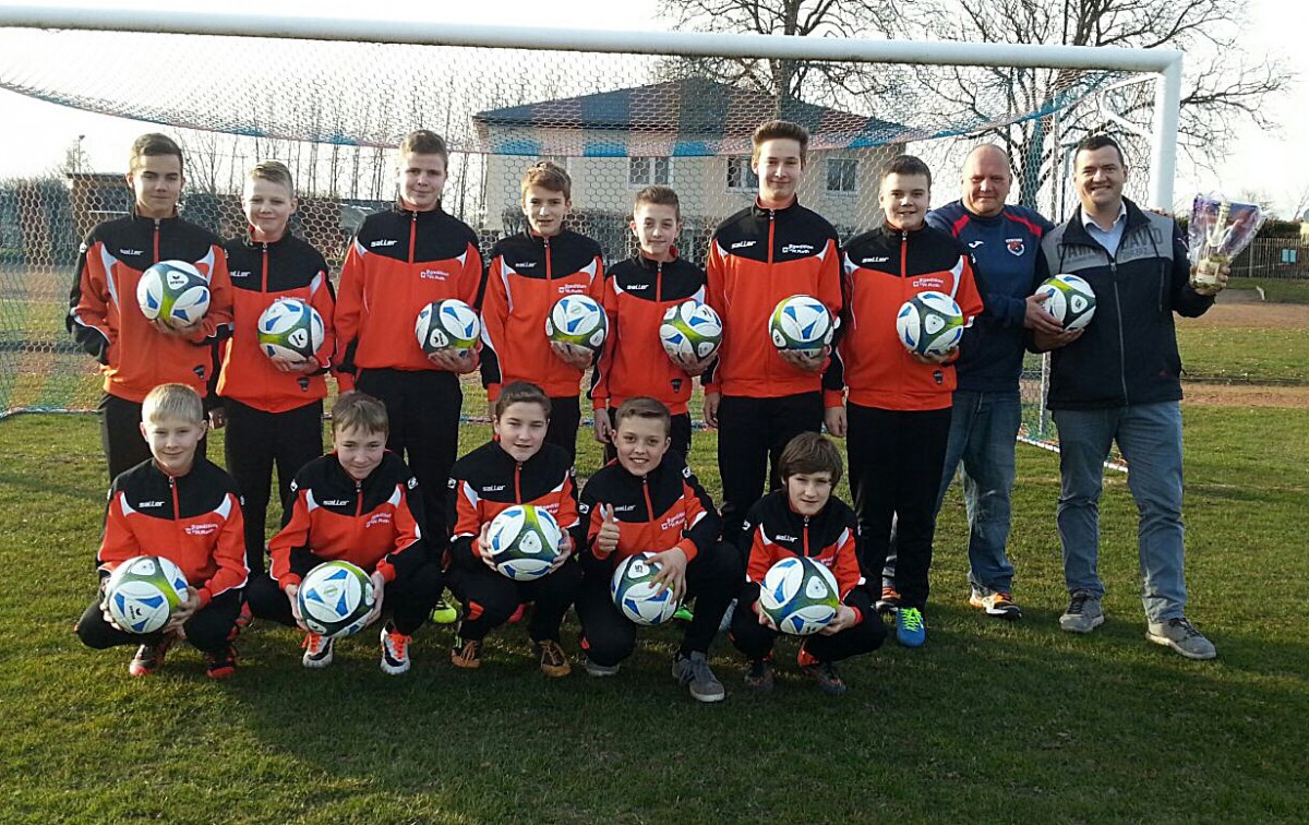 Über 15 neue Trainingsbälle konnten sich unsere C-Junioren um Trainer Rene Wetzel freuen, die stellvertretend durch Steffen Zaumsegel von der Spedition W. Roth übergeben wurden.