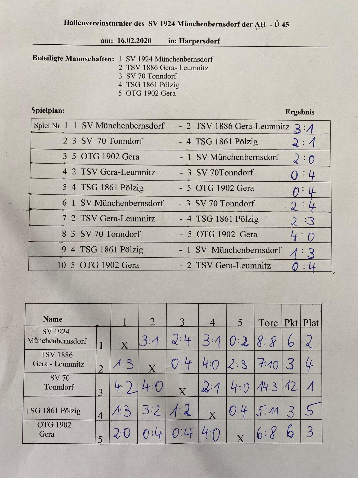 Am 16.2. hatten unsere Altherren zu ihrem Turnier nach Harpersdorf eingeladen. Leider bestand das Teilnehmerfeld nur aus fünf Mannschaften, da zwei Teams kurzfristig absagen mussten.